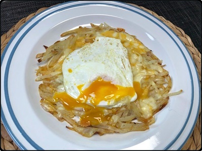 2. 팬에 식용유 두르고 감자와 소시지를 볶아줍니다. 5. 감자가 익을 때쯤 불을 약불로 맞추고 달걀 개수만큼 감자 사이 빈 공간을 만들어 줍니다. 빈 공간에 식용유를 적당히 두르고 달걀을 깨준 후 달걀에 맛소금을 취향에 맞게 적당히 뿌려줍니다.