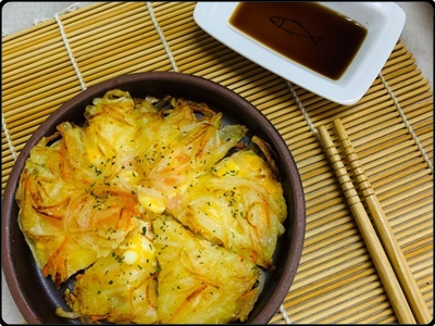 1) 양파는 썰어서 찬물에 담가 매운기를 한 번 빼주세요. 간장에 있는 양파를 건져서 전이랑 흡수하면 느끼한 맛도 잡아주고 전을 많이 먹을수 있거든요. 양파를 1/2개만 넣었다가 간장에 담기는 만큼 이에 더하여 넣어서 3/4개를 썰어서 넣었는데 양파는 취향껏 덜 넣거나 더 넣어서 만들어 주면 된다고 합니다. 새콤한 걸 즐기는 분들은 식초도 더 넣어주세요.