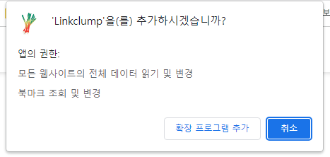 3. 팝업창이 뜨게되면 확장 프로그램 추가를 선택합니다.
