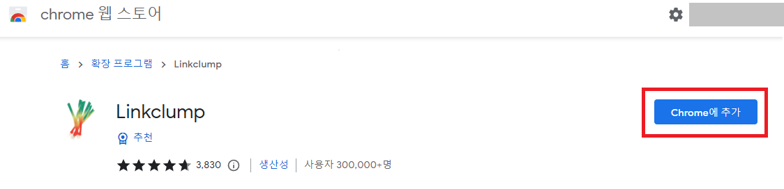 2. 검색 결과로 확장 프로그램인 Linkclump가 검색되는 것을 확인할 수 있습니다. 오른쪽에 검색된 Linkclump를 클릭합니다. 그리고 이동한 다음 화면에서 Chrome에 추가를 선택합니다.