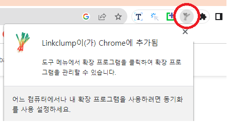 4. 확장 프로그램을 추가하면 Linkclump가 크롬에 추가되고 크롬브라우저 오른쪽 상단에 아이콘이 추가되는 것을 확인할 수 있습니다.