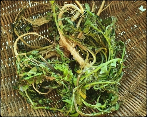 2) 봄철 식탁에서 흔히 볼 수 있는 식재료의 하나인 냉이는 시든 잎을 떼어내고 흐르는 물에 깨끗이 씻어 흙을 제거합니다.