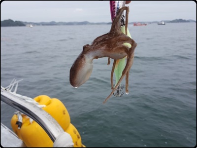 쭈꾸미가 에기에 올라탔을 때 릴을 감아올리게 되고 쭈꾸미가 물위로 올라옵니다. 그렇다면 쭈꾸미가 에기에 올라탄 건 어떻게 알 수 있을까요? 바로 들고 있는 낚시대에 무게 감이 느껴졌을 때가 바로 릴을 감아올려야 하는 때입니다. 하지만 물살이 세거나 유속이 빠른 경우 감각적으로 느낄 수 없는 경우가 있습니다.