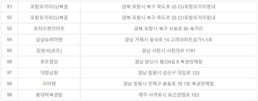 | 11 | 코리아25옥계점 | 수동 | 경북 구미시 산호대로25길 18-4 |