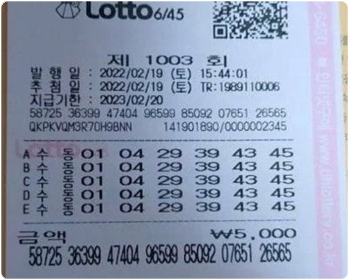 5등은 총 2,278,058게임으로 당첨 금액은 각각 5,000원입니다. 당첨번호 3개 숫자가 일치해야 합니다. 총 당첨 금액은 11,390,290,000원입니다.