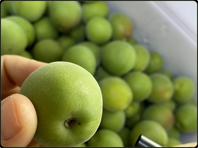2) 매실을 청결한 물에 잘 닦아서 불순물을 없애줄 수 있고 뾰족한 이쑤시게나 포크나 과도를 사용해 매실의 굳이지를 약간 파서 없애 줘요. 이런식으로 해야만 매실이 흉터가 나지 않고 어렵지 않고 맛있는 매실장아찌를 치를 수 있다고 합니다.