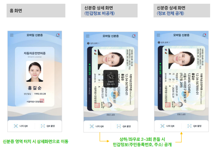 신원확인의 패러다임을 바꾸는 첫 번째 시작은 바로 모바일 신분증입니다. 이는 모바일 운전면허증을 시작으로 국가유공자증, 주민등록증, 외국인등록증 등으로 확대 진행될 예정이라고 합니다.
