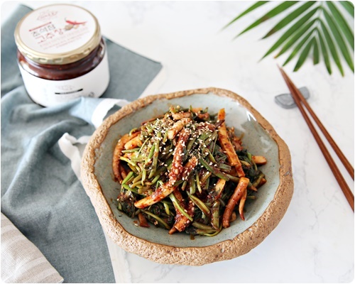 위에서 언급한 간장 미나리무침 만드는 법에서 7까지의 과정은 동일합니다. 무침을 하기 위한 양념이 조금 다릅니다. 그리고 맛을 내기 위해 고추장을 사용하는데 너무 많이 사용하게 되면 미나리의 맛을 해칠 수 있습니다. 적당한 양의 고추장을 사용하고 간이 부족할 경우 소금으로 간을 맞춥니다.