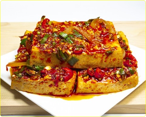 취두부: 두부를 소금에 절여 오랫동안 삭힌 것으로 중국의 대표 두부입니다. 일명 썩은 두부라고도 하며 강한 향이 특징입니다. 냄새는 역겨워도 먹으면 고소한 맛이 납니다. 중국, 홍콩, 대만에서는 지방마다 다양한 종류의 취두부가 있습니다. 지역마다 색깔과 향미가 다른 취두부는 어떤 두부와 소금물을 썼느냐에 따라 결정된다고 합니다.