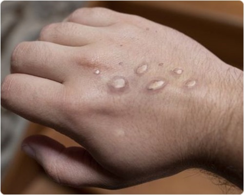 발진은 얼굴, 입, 손, 발, 가슴, 항문생식기 근처 등에서 주로 나타날 수 있습니다. 발진은 주로 반점부터 시작하여 여러 단계로 진행됩니다. 처음에는 반점이었다가 구진이 되고 수포(물집)가 생깁니다. 그리고 고름이 되고 딱지로 진행됩니다. 엠폭스 증상 초기에는 뾰루지나 물집처럼 보일 수 있습니다. 하지만 통증과 가려움증 등이 동반되기도 합니다.