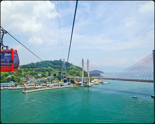 여수 해상 케이블카는 거북선 대교를 지나며 지상에서 바라보는 여수 바다와 달리 항공사진에서 곧잘 볼 수 있는 아름다운 풍경을 볼 수 있는 매력이 있고요. 국내 처음으로 바다 위에서 살아가는 해상 케이블카로 아름다운 바다를 구경할 수 있다고 합니다.