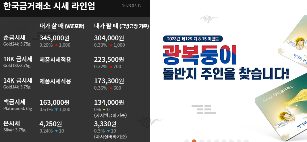오늘 금시세 1돈가격 (2023년 7월 12일)