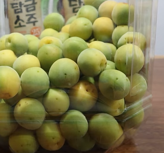 흐르는 물에 매실을 문지르면서 청결하게 세정해줍니다. 그렇다고 너무 세게 문지르면 겉면이 파이게 때문에 살살 문지르면서 그득히 헹궈주어요. 매실주나 매실청 모두 물기를 바짝 빼주는 작업이 중요 해요. 물기가 조금이라도 남아있다라고 하면 곰팡이가 금방 드러날 수있기 때문이라고 합니다. 하루 정도나 소쿠리 같은 곳에 매실을 담아두면 매실 물기가 금방 빠져요.