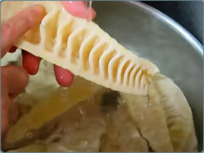 2. 조리하기 전에 쌀뜨물에 담그면 죽순 안에 있는 수산이 녹아 나와요. 그리하여 죽순에 포함되어 있는 각가지 성분이 산화되는 것을 미리 막아주고 떫은 맛도 사라지게해주는 효과가 뛰어납니다. 뿐더러 수산 성분은 결석이 있는 사람에게 좋지 않으므로 조리 전 이 과정을 거쳐서 수산을 제거하는 것이 좋아요.
