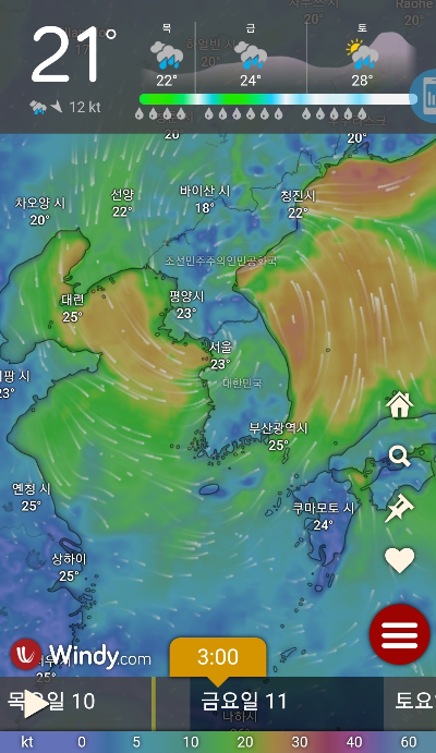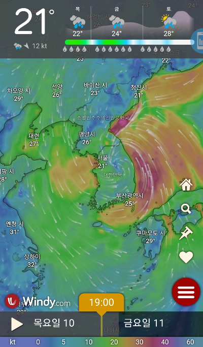 기상청의 날씨 정보를 참고하기도 하지만 많은 사람들이 날씨 어플 윈디를 많이 사용합니다. 날씨 어플 윈디 Windy는 3가지 예측 모델을 제공하기 때문에 정확도 여부에 따라 선택적으로 사용할 수 있습니다. 또한 가입 절차가 간단하고 기본적인 정보는 무료로 이용할 수 있기 때문에 배를 운행하는 선단이나 낚시를 즐기는 사람들이 많이 사용하는 어플이기도 합니다.
