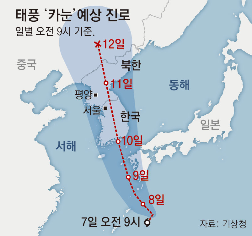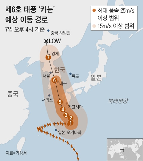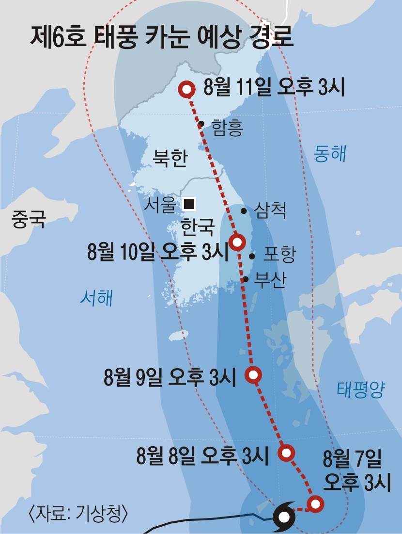 6호 태풍 카눈 예상경로
