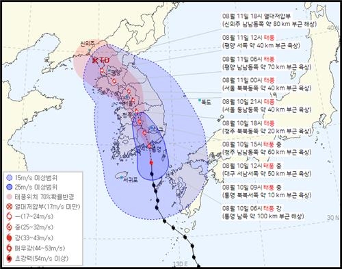 현재 풍속 20m/s, 시속 31km 속도로 북상하고 있는 6호 태풍 카눈은 늦은 밤 수도권을 관통할 예정입니다. 10일 오후 9시에는 수도권에 진입해서 11일 0시를 기점으로 서울을 벗어날 것으로 보입니다. 금요일 오후를 기점으로 태풍 카눈 예상경로는 한반도를 빠져나갈 것으로 예상됩니다.